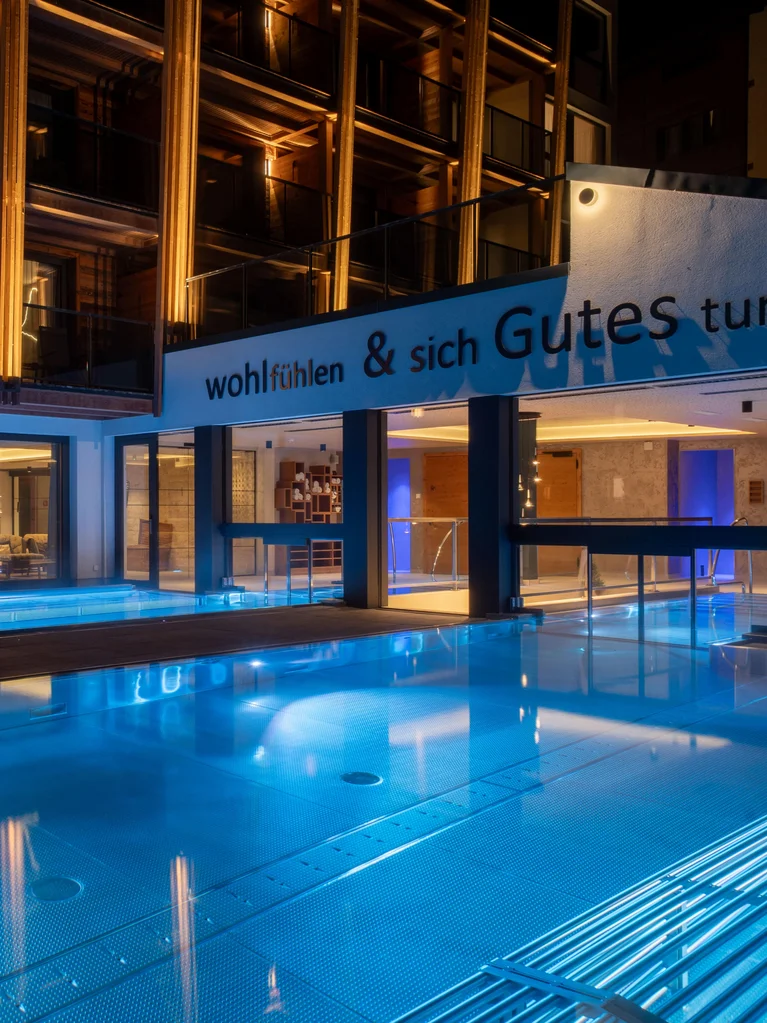 Herzstück im 4-Sterne-Superior-Wellnessresort ist der über 1'000m2 grosse GinaSPA, der sich über drei Etagen erstreckt: Mit drei verschiedenen In- & Outdoorpools (34-36°C), darunter der Infinity Pool, verschiedene Saunen, Dampfbäder und Ruheräume, sowie ein separater Adults-only Bereich. So fühlen sich Familien und alleinreisende Paare bei uns gleichermassen zu Hause.