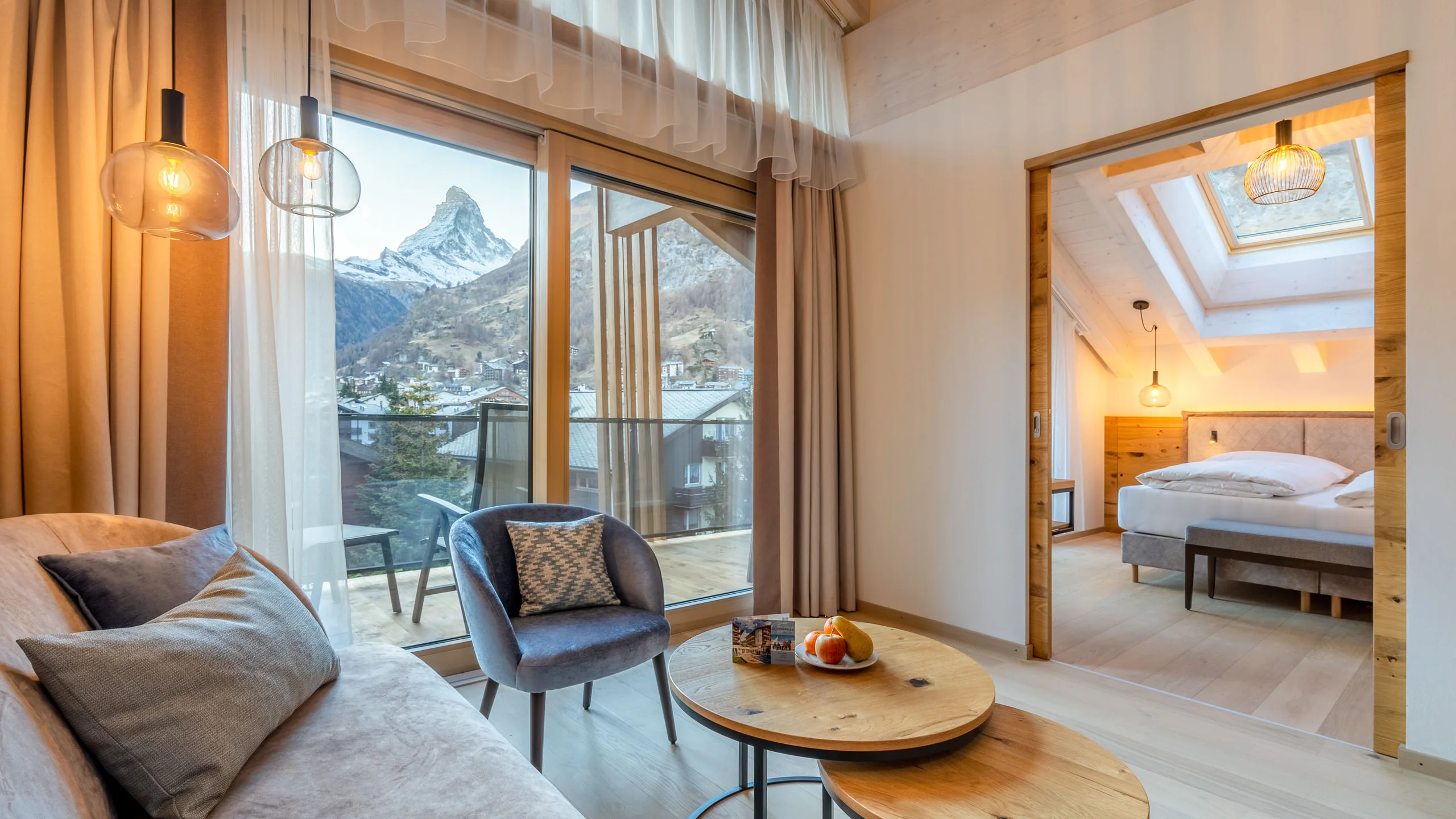 Passez des heures paisibles dans une atmosphère chaleureuse. Au Resort La Ginabelle vos rêves de vacances deviennent réalité. Les chambres, appartements et suites juniors côté Sud vous offrent une vue unique sur le Cervin.