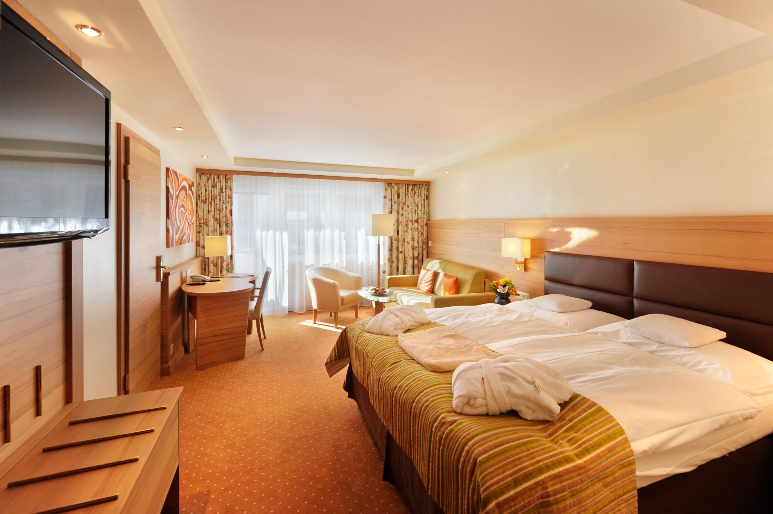 Pour rendre vos vacances inoubliables, le prix par nuitée comprend de nombreux services tels que l'utilisation de notre espace bien-être GinaSPA et le grand buffet de petit déjeuner tous les jours. La demi-pension peut être ajoutée sur demande.