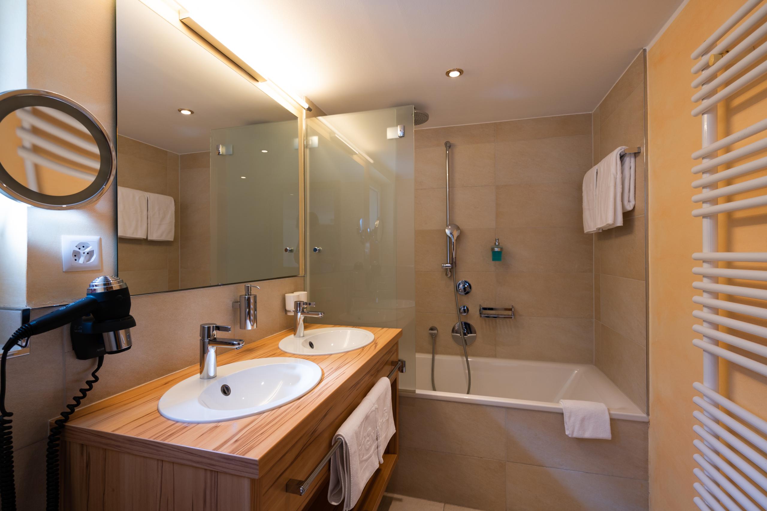 - Miroir cosmétique, chauffe-serviettes, sèche-cheveux, téléphone, radio, minibar, coffre-fort