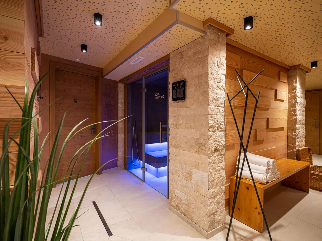 Organische Materialien, wie Douglasienholz und Travertinstein schmücken die Wände und verleihen so dem SPA Bereiche seine warme Note. Es erwarten Sie drei Saunen, ein Eisbrunnen, sowie eine Erlebnisdusche unter freiem Himmel. Ebenso steht ein weiterer Ruheraum mit stimmungsvollem Cool-Fire Ofen für erholsame Momente, exklusiv für die Gäste der Residenz Altiana, zur Verfügung.