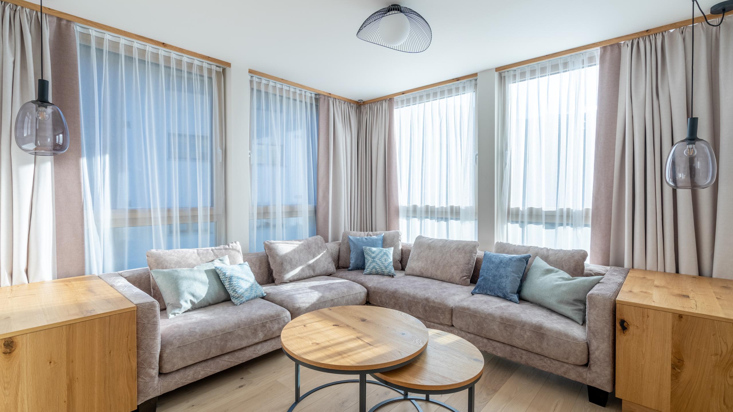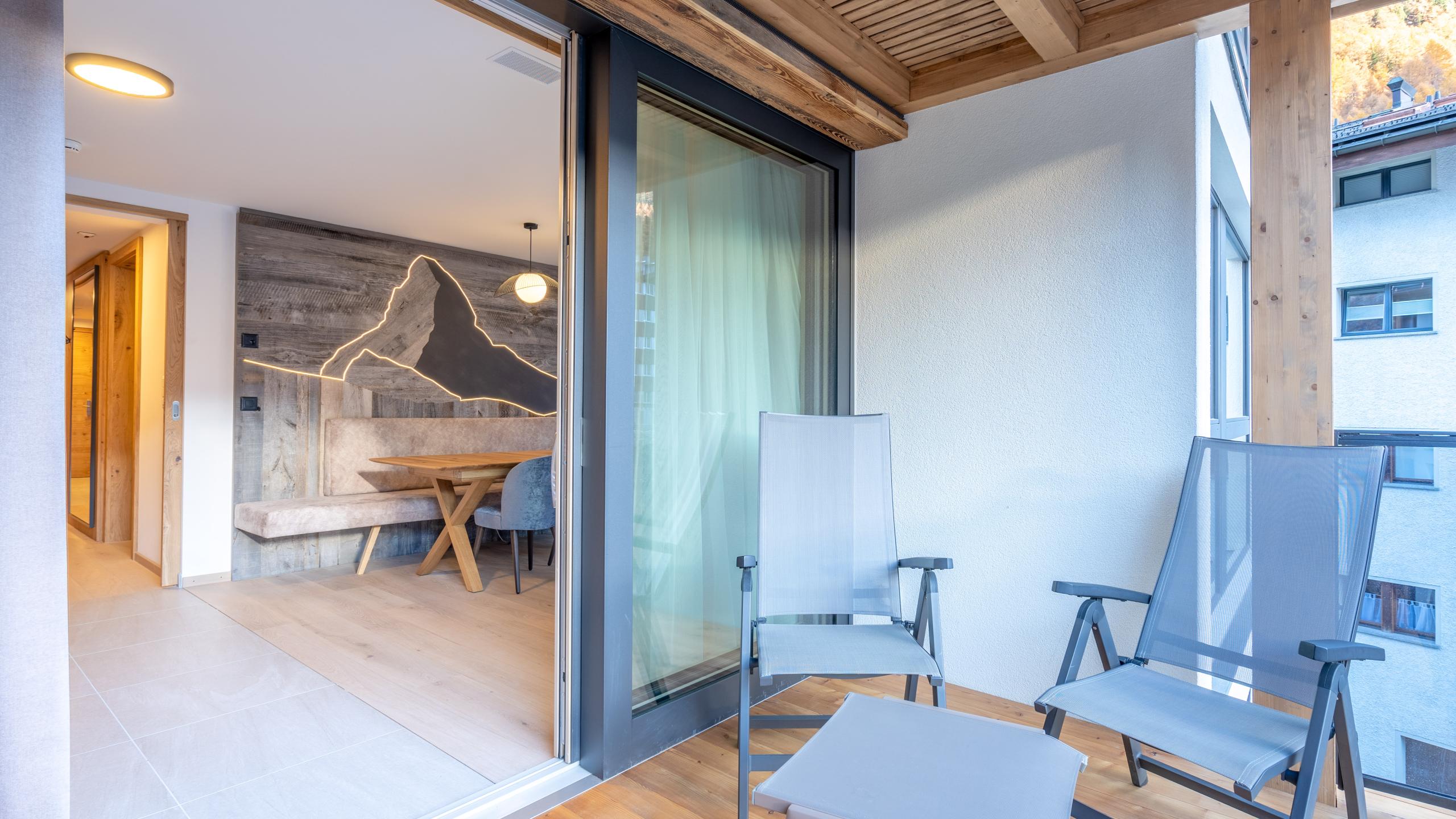 Das Appartement "Platthorn" Superior ist im modernen, alpinen Stil eingerichtet und befindet sich im zweiten und dritten Stock des Altiana by La Ginabelle. Es besteht aus zwei Einheiten mit Verbindungstüre. Das Highlight des Eck-Appartements ist neben den beiden separaten Schlafzimmer der grosse Wohnbereich mit Erker und Blick aufs Matterhorn.
